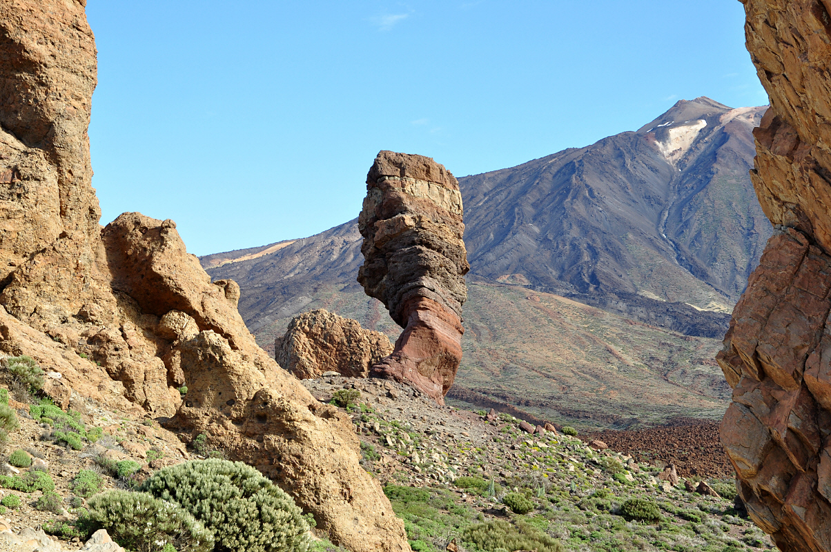 Rund um die bizarren Felstürme (einer davon ist der „Finger Gottes“) im Mittelteil der Cañadas mit ständigem Ausblick zum Teide.
