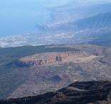 führt. Von dort beginnt der Abstieg zum Pico Viejo durch Lava-Geröllhalden. Nach ca. 2,5 Stunden erreichen wir den Krater, der ca. 800m